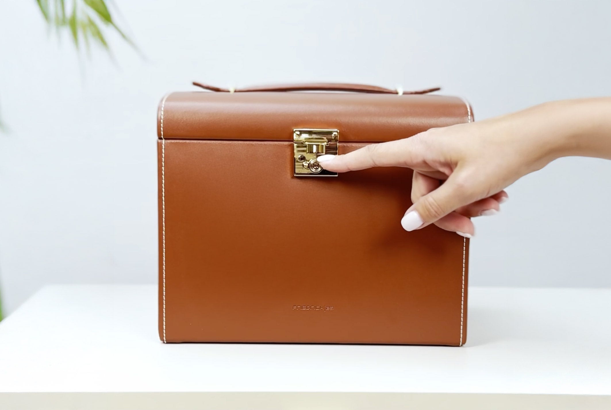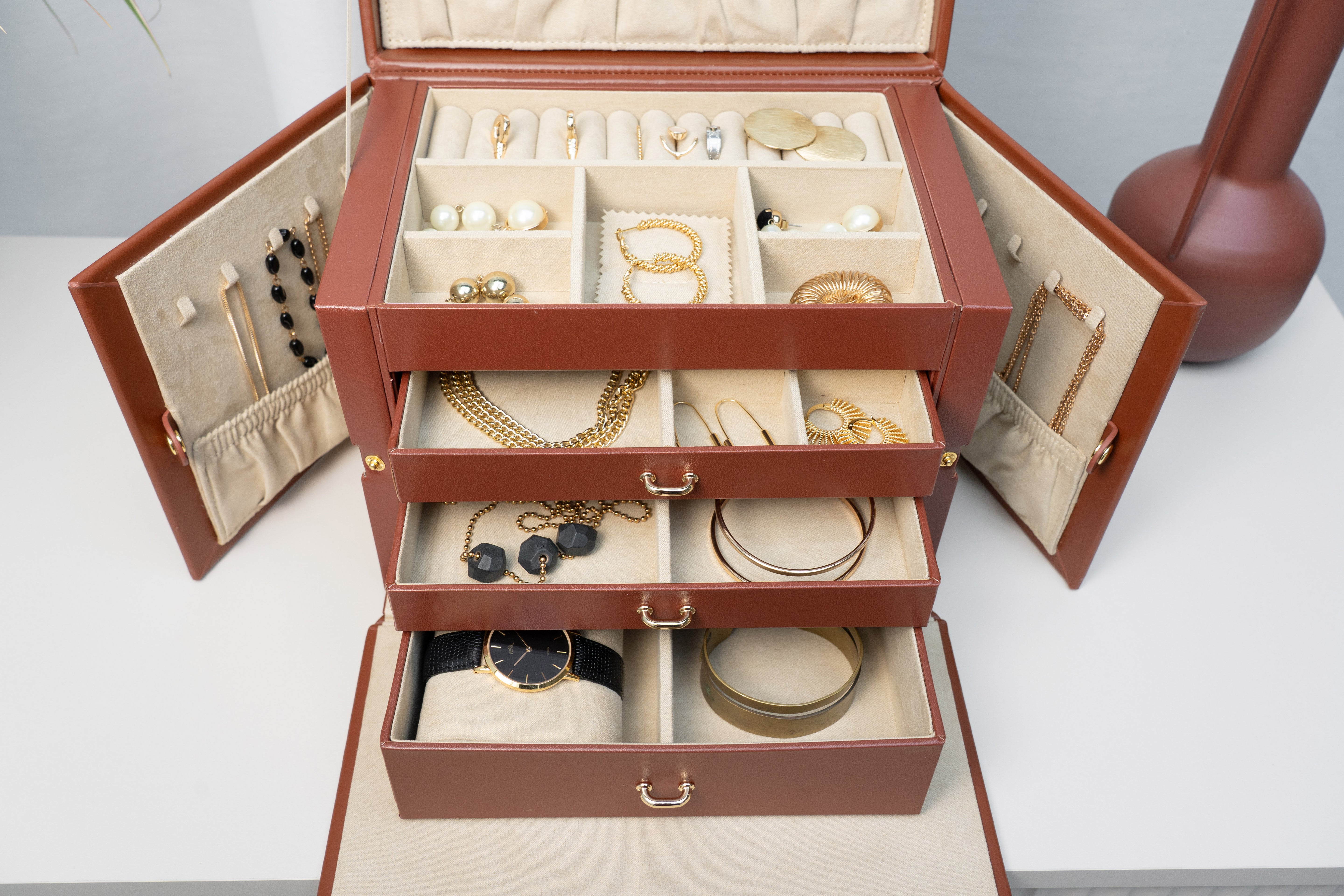 Every piece will find its place in this elegant jewelry box. Soft, high-quality leather, velvety padded compartments, and thoughtful organization protect what's dear to you – stylishly, securely, and beautifully presented.