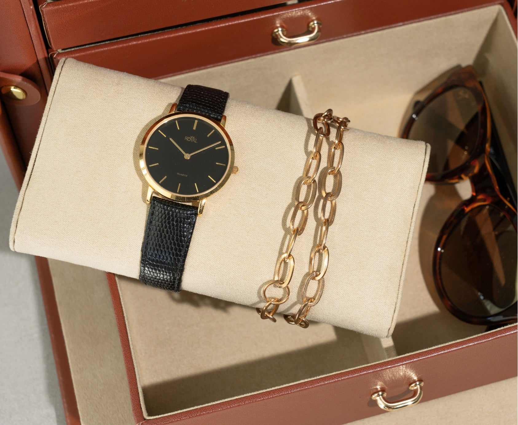 Whether it's an elegant watch or delicate rings – thanks to the removable, large watch cushion and the clever compartment layout, you can store your jewelry exactly the way you like.