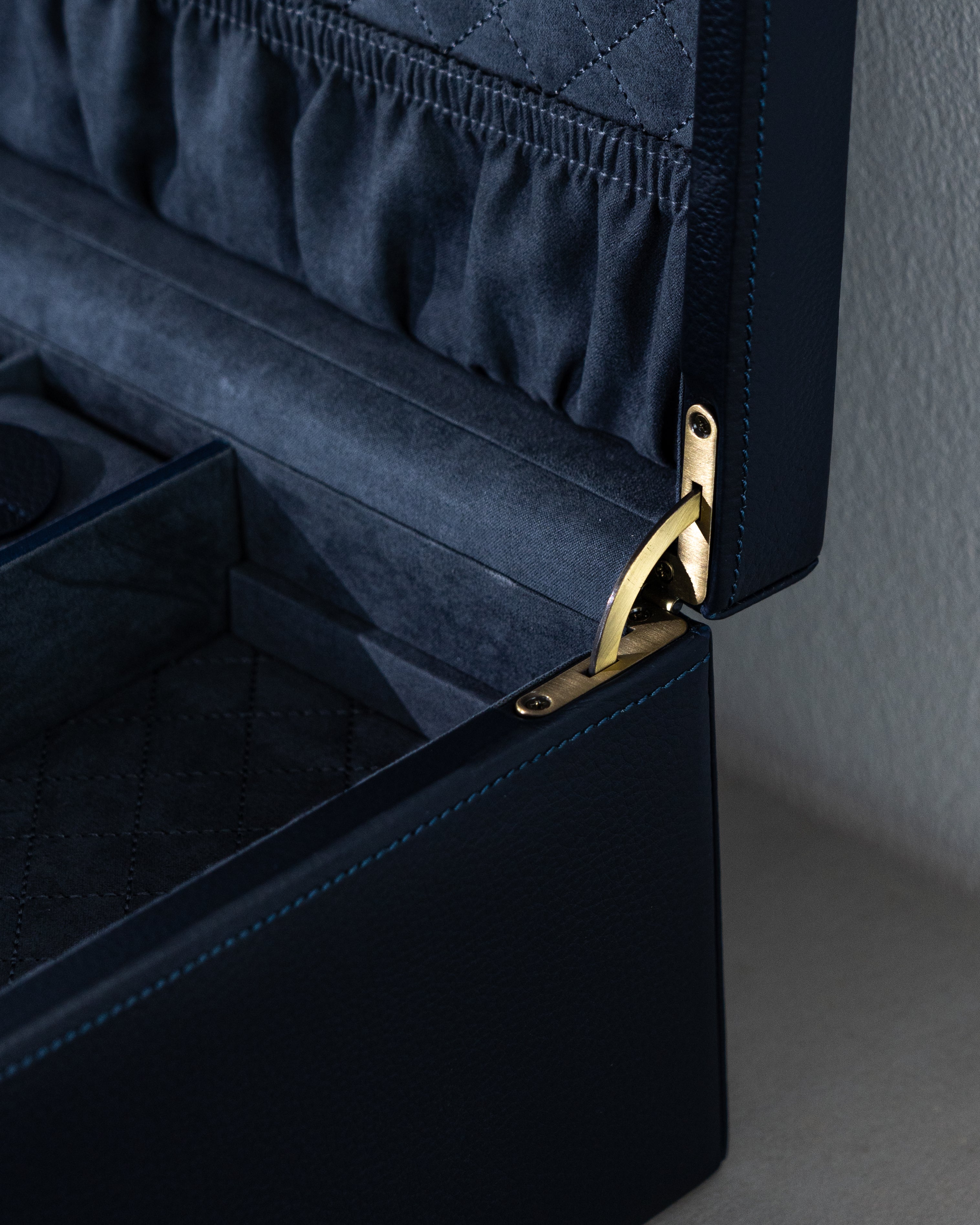 Jedes unserer Produkte wird von erfahrenen Handwerkern hergestellt. Vom präzisen Zuschnitt des Leders bis zur finalen Verarbeitung legen wir größten Wert auf Details. Unsere Schmuckkästen und Uhrenboxen bieten nicht nur optimalen Schutz für deine wertvollen Stücke, sondern sind auch stilvolle Accessoires, die den Alltag und dein Zuhause bereichern.