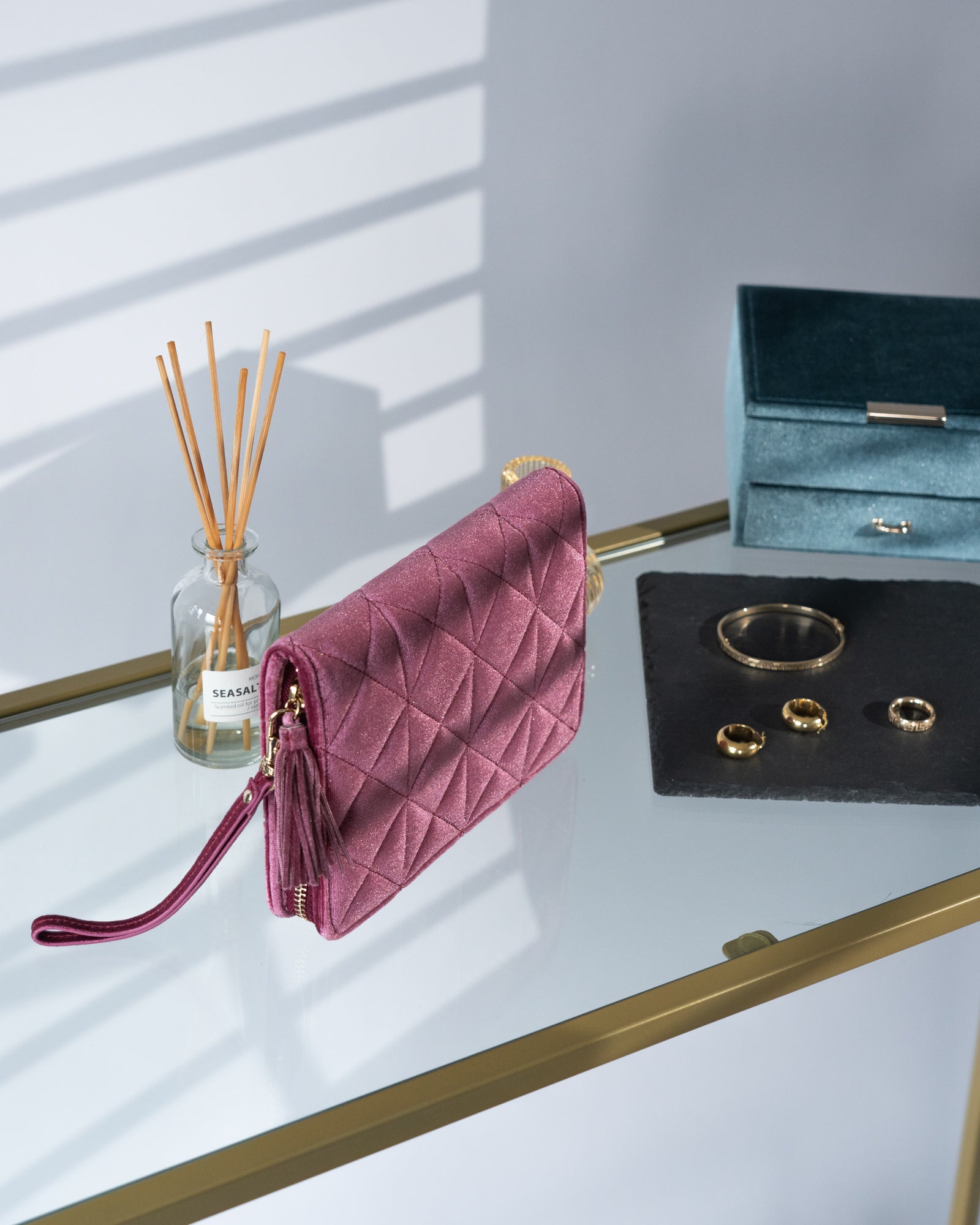 - Reißverschluss-Schmucketui aus Velvet mit hübschem Steppmuster und goldenen Beschlägen
